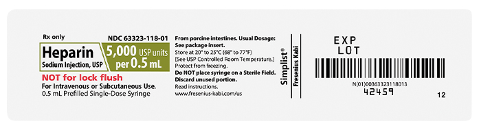 Product Label image for 5000 USP per 0.5 mL of Heparin Blister Pack Syringe image for 5000 USP per 0.5 mL of Heparin 4.449” x 1.063”