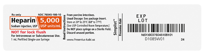 Product Label image for 5000 USP per 1 mL of Heparin Blister Pack Syringe image for 5000 USP per 1 mL of Heparin 4.449” x 1.063”